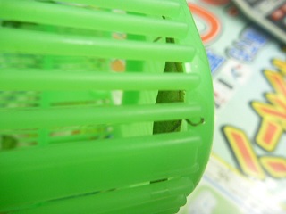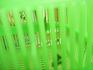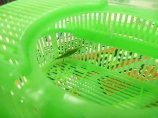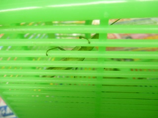 バッタは移動中にカゴの隙間に足を