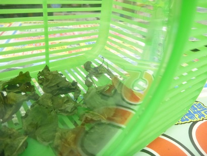 カゴの中に入れてある葉っぱに擬態(?)してしまうんですよね。